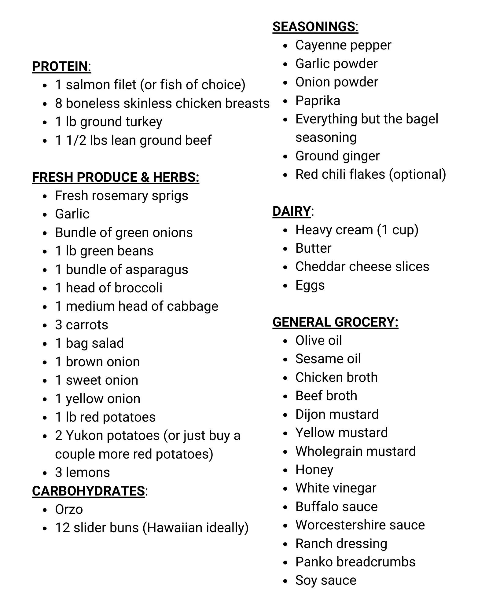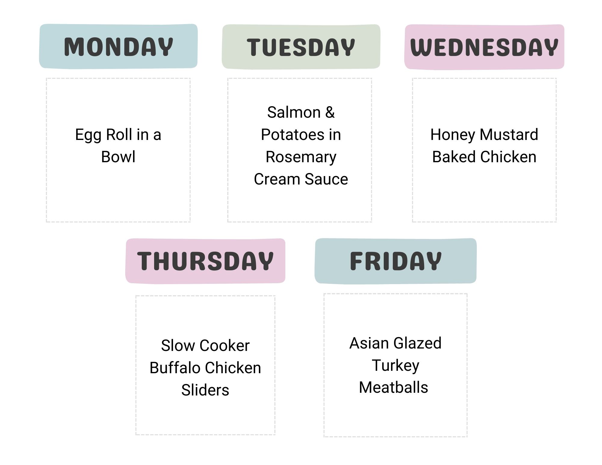 Also, you will again notice I've cut down the number of meals. I never make all 6 meals and I highly doubt you guys do either. SO I'm going to make my life easier and cut down to 5 per week!