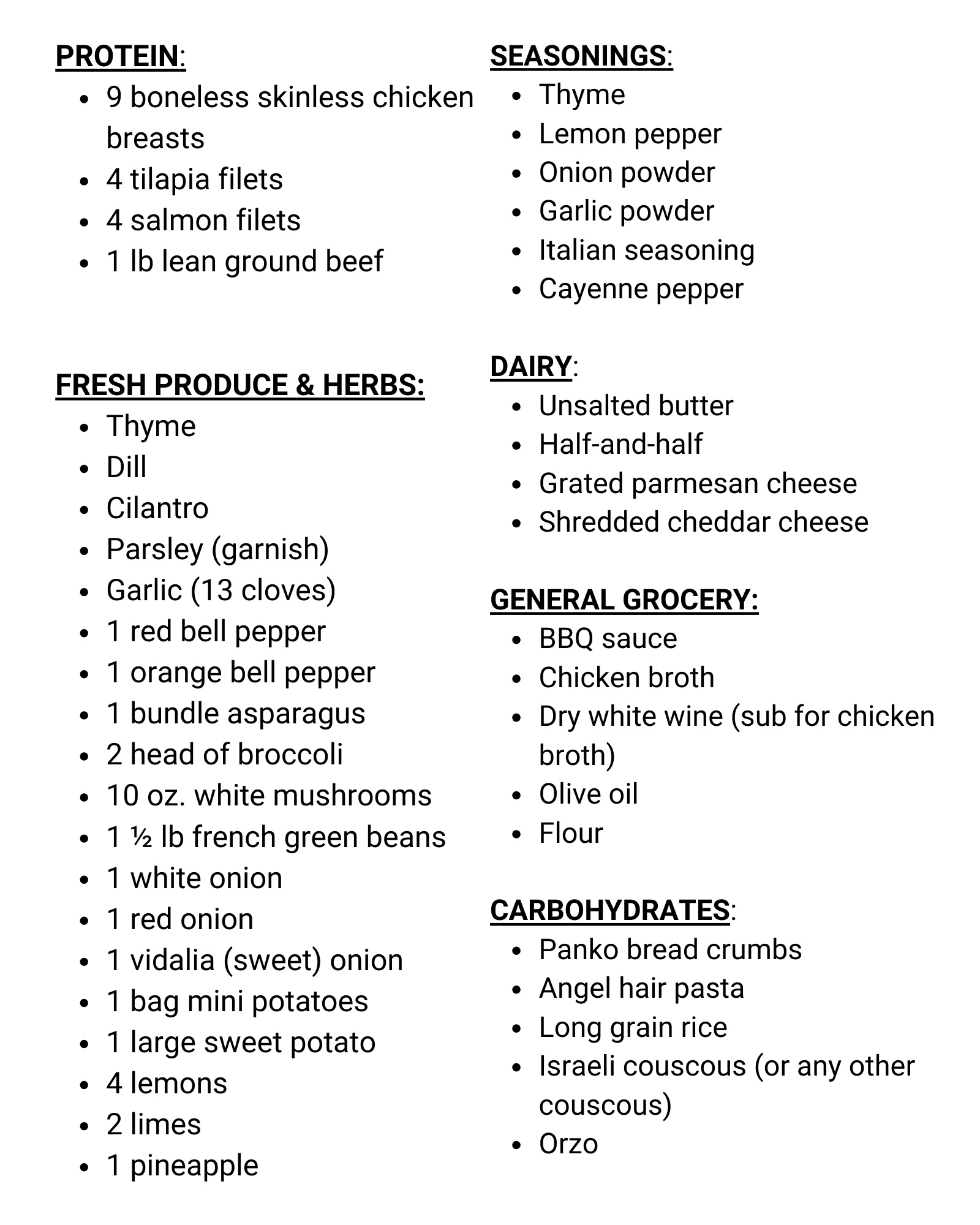- 2 for lemon thyme chicken, 2 for dill tilapia