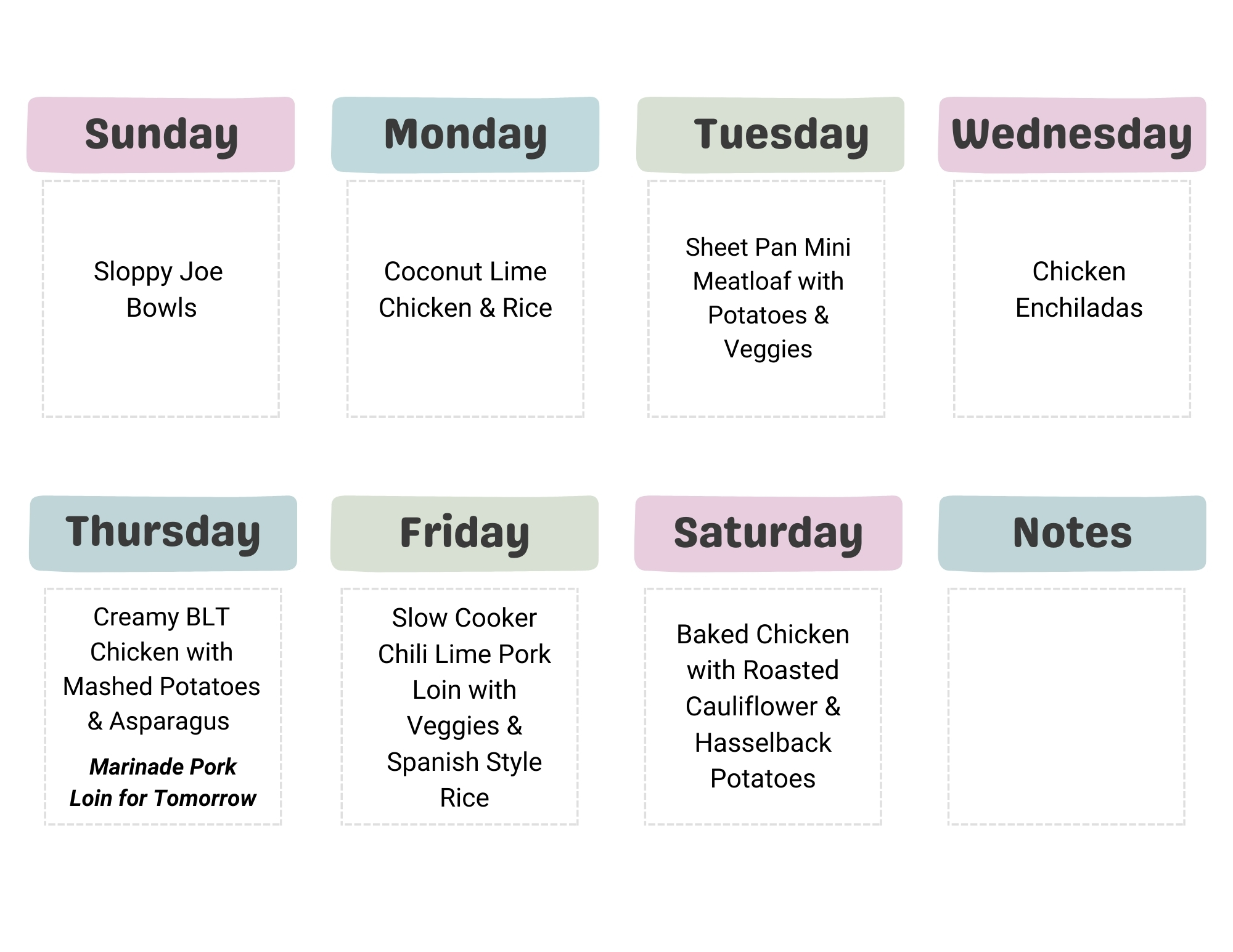 Another week, another grocery haul and menu drop! I added in servings and times to these recipes, slowly improving things. All of the meals we have are based around using the leftovers for lunch the next day. If you have a bigger family and still want leftovers I'd increase everything if not double it. I know this seems like a lot of meat but keep the lunch rollover concept in mind. I hope this continues to help ease you into the week with full stomachs and calm minds!